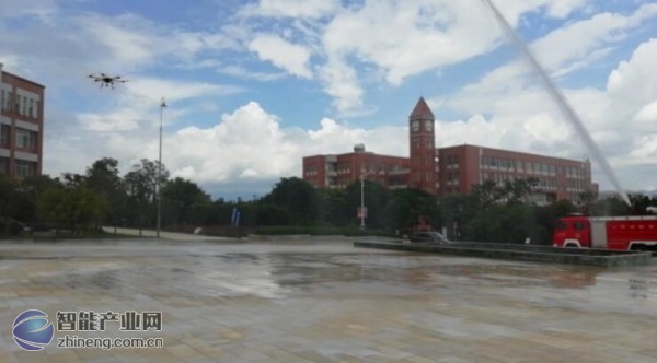 演練現(xiàn)場通過消防車噴水來達(dá)到強降雨的極端氣候,??低曅埴椣盗袩o人機飛入其中,保持機身穩(wěn)定,展現(xiàn)出極高的環(huán)境適應(yīng)性,完成演練。