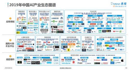 本次《報(bào)告》則以生態(tài)為視角,全面展現(xiàn)了2019年中國AI產(chǎn)業(yè)生態(tài)圖譜,將產(chǎn)業(yè)生態(tài)共分為底層硬件、通用AI技術(shù)及平臺(tái)、應(yīng)用領(lǐng)域三大層面。從上述圖譜中可以進(jìn)一步分析發(fā)現(xiàn),有多數(shù)企業(yè)在不同層面均有涉獵。如百度、搜狗等企業(yè),積極研發(fā)智能語音、自然語言處理、機(jī)器學(xué)習(xí)等技術(shù)平臺(tái),并在智能家居、移動(dòng)設(shè)備等領(lǐng)域開展應(yīng)用;商湯科技、曠視科技和影譜科技等則深耕于計(jì)算機(jī)視覺領(lǐng)域,并在金融、安防、建筑以及視頻/娛樂/社交等領(lǐng)域快速實(shí)現(xiàn)應(yīng)用落地。