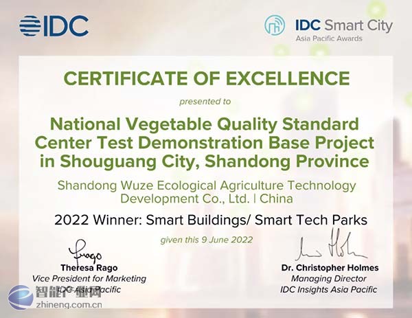 2022年6月9日,第八屆IDC亞太區(qū)智慧城市大獎(jiǎng)獲獎(jiǎng)名單公布。百度智能云聯(lián)合濰坊市農(nóng)業(yè)產(chǎn)業(yè)化重點(diǎn)龍頭企業(yè)山東物澤生態(tài)農(nóng)業(yè)科技發(fā)展有限公司共同打造的“全國蔬菜質(zhì)量標(biāo)準(zhǔn)中心試驗(yàn)示范基地項(xiàng)目”從參與評(píng)選的330多個(gè)智慧城市項(xiàng)目提名中脫穎而出,榮獲2022 IDC亞太區(qū)智慧城市大獎(jiǎng)“智慧建筑/智慧園區(qū)”類別最佳亞太智慧城市項(xiàng)目,成為中國內(nèi)地僅有的四個(gè)獲獎(jiǎng)項(xiàng)目之一。