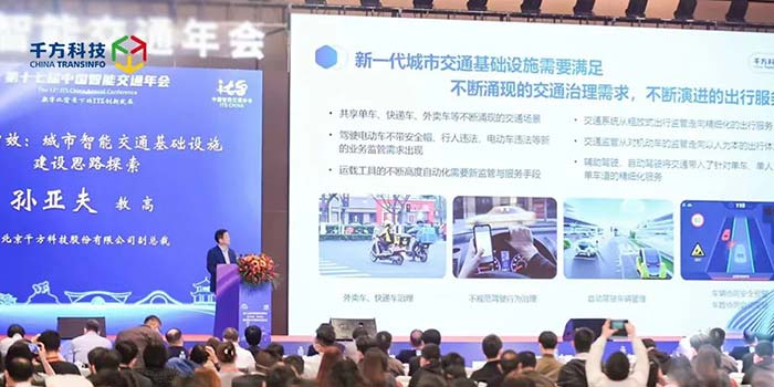 在大會(huì)主論壇中,千方科技副總裁孫亞夫發(fā)表了“降本增效,新一代城市交通基礎(chǔ)設(shè)施建設(shè)思路探索”主旨演講,圍繞交通系統(tǒng)新特征、新趨勢(shì)、新需求,分享了千方科技以降本增效為理念,以路口智能化建設(shè)為核心,構(gòu)建新一代城市交通基礎(chǔ)設(shè)施的思路與探索。