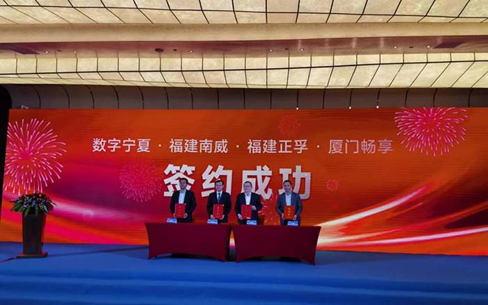 在寧夏回族自治區(qū)國資委領(lǐng)導(dǎo)的見證下,數(shù)字寧夏建設(shè)運(yùn)營有限責(zé)任公司與南威軟件股份有限公司簽約。