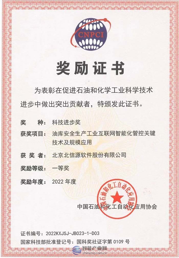 由北信源參與完成的《油庫(kù)安全生產(chǎn)工業(yè)互聯(lián)網(wǎng)智能化管控關(guān)鍵技術(shù)及規(guī)模應(yīng)用》項(xiàng)目榮獲2022年度中國(guó)石油和化工自動(dòng)化應(yīng)用協(xié)會(huì)“科技進(jìn)步一等獎(jiǎng)”。同時(shí),北信源軟件股份有限公司董事長(zhǎng)林皓、北京研發(fā)中心副總經(jīng)理劉建兵因在項(xiàng)目中作出突出貢獻(xiàn),被授予個(gè)人“科技進(jìn)步一等獎(jiǎng)”。