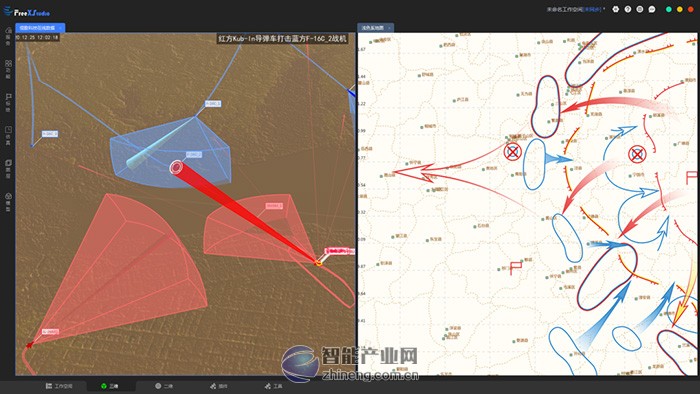 綜合態(tài)勢(shì)顯示系統(tǒng)(FreeXGIS Situation)基于FreeXGIS Desktop研發(fā),涵蓋了海陸空天電網(wǎng)綜合態(tài)勢(shì)顯示的二次開(kāi)發(fā)與應(yīng)用,具有想定編輯、戰(zhàn)場(chǎng)態(tài)勢(shì)環(huán)境構(gòu)建、數(shù)據(jù)接入、過(guò)程模擬、推演過(guò)程記錄及回放等功能??赏ㄟ^(guò)控制場(chǎng)景、兵力、顯示、視角等,構(gòu)建三維數(shù)字化戰(zhàn)場(chǎng)環(huán)境,實(shí)時(shí)展現(xiàn)出對(duì)抗雙方兵力和作戰(zhàn)行為,為綜合態(tài)勢(shì)分析、評(píng)估、優(yōu)化提供依據(jù)。