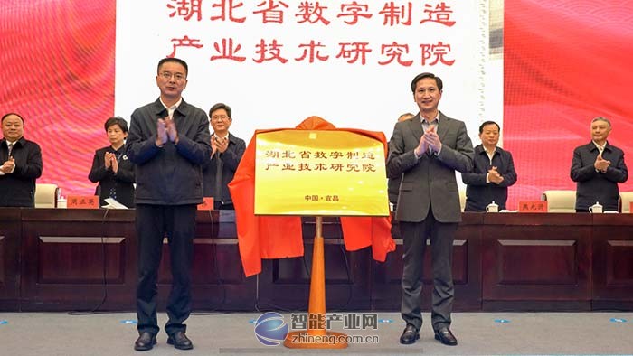 中共宜昌市委書記熊征宇(左)、北京東土科技董事長(zhǎng)李平(右)共同為湖北省數(shù)字制造產(chǎn)業(yè)技術(shù)研究院揭牌