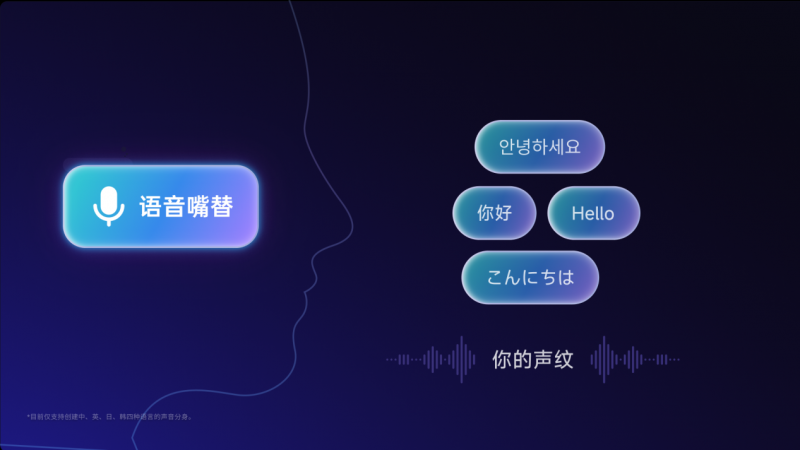 更具突破性的是“語(yǔ)音嘴替”功能——用戶僅需錄制10秒中文,即可生成中、英、日、韓四國(guó)語(yǔ)言的個(gè)人聲紋,用原生音色完成跨語(yǔ)言表達(dá),徹底告別機(jī)械合成音的冰冷感。