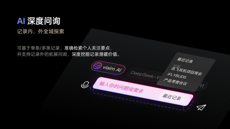 “萬(wàn)姆助理”在承襲了上一代耳機(jī)的智能問(wèn)答能力之外,也實(shí)現(xiàn)了更深層次的交互升級(jí)——用戶可對(duì)單條或多條記錄發(fā)起深度問(wèn)詢,AI將基于語(yǔ)義分析提供精準(zhǔn)答案,甚至挖掘潛在關(guān)聯(lián)信息,讓會(huì)議價(jià)值最大化釋放。