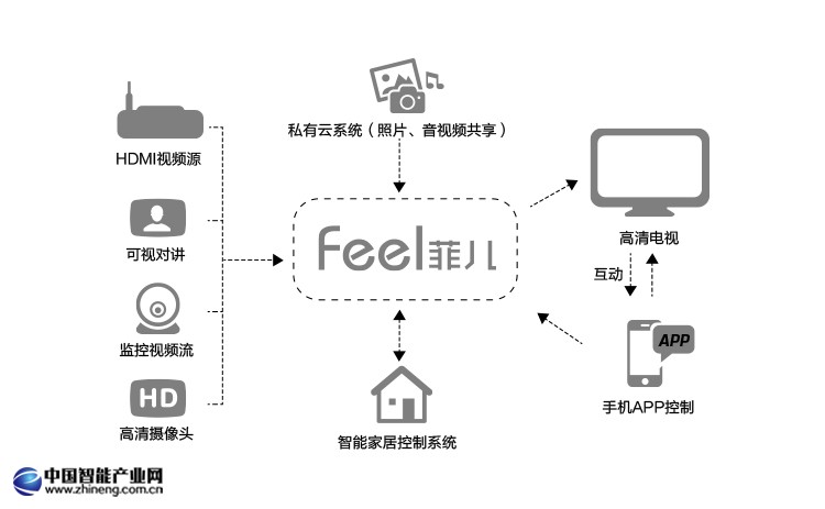 “菲兒·云客廳”,簡單來說,就是將互聯(lián)網(wǎng)、家庭網(wǎng)、社區(qū)網(wǎng)串聯(lián)打通。它基于博云獨有的智能網(wǎng)絡(luò)系統(tǒng),綜合眾多主流多屏協(xié)議,通過菲兒,能夠?qū)崿F(xiàn)在 電視,投影儀,電腦,平板,手機等不同平臺設(shè)備之間互聯(lián)互通,使任一設(shè)備都可成為三網(wǎng)(互聯(lián)網(wǎng)、家庭網(wǎng)、社區(qū)網(wǎng))的智慧終端,真正做到一鍵分享,多屏互 動,無縫實時,且坐著不動,就能全面掌控家中所有智能設(shè)備,一目了然,簡單便捷。