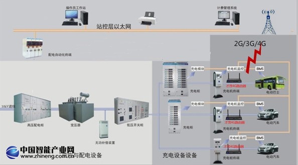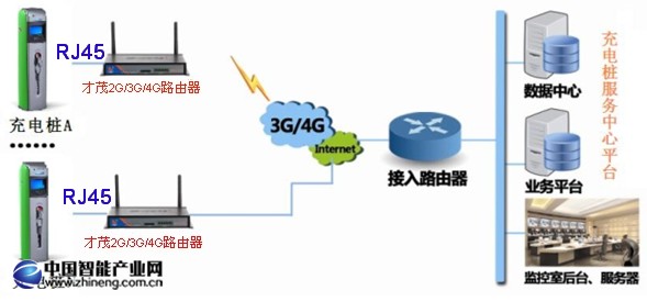 充電樁無線數(shù)據(jù)應(yīng)用拓?fù)鋱D(才茂2G/3G/4G路由器)
