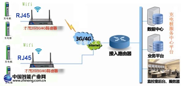 充電樁無線數(shù)據(jù)應(yīng)用拓?fù)鋱D(才茂2G/3G/4G路由器+wifi)