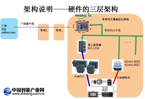 第一層,最傳統(tǒng)也是最貼近設(shè)備的ADAM產(chǎn)品構(gòu)成了控制層,ADAM-6K系列產(chǎn)品提供了單口modbusTCP或雙網(wǎng)口modbusTCP乃至eithernetIP接口,方便用戶對現(xiàn)場的物理量進(jìn)行分布式測量,這是一種采集與控制理念的體現(xiàn)。