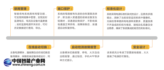 電源是很多安防行業(yè)系統(tǒng)建設中容易忽視的環(huán)節(jié)。如果有人把CPU比作人的大腦,那么電源就是一個人的心臟!任何安防設備,離開它均不能工作。安防電源的安全、可靠是保證整個安防系統(tǒng)正常運行的重要條件。大華股份創(chuàng)新性地提出了金融智能供電系統(tǒng),讓電源加上“聯(lián)網(wǎng)”和“雙備”翅膀,加倍保障銀行技防系統(tǒng)的健康運行!
