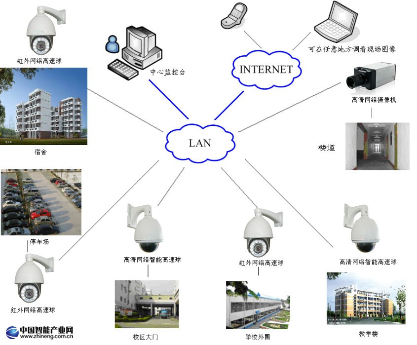 貴州武警某干部子弟學(xué)校位于貴州某市。為了加強校園安全管理,新建全高清綜合視頻監(jiān)控系統(tǒng),為保障師生員工的人身財產(chǎn)安全,完善學(xué)校安全防范體系、提高校園整體防控能力,創(chuàng)建一個文明、安全、和諧、美麗的校園環(huán)境等考慮,欲建設(shè)園區(qū)視頻監(jiān)控安全防范綜合管理系統(tǒng)。通過在園區(qū)主干道及圍墻周界教室、宿舍走廊等設(shè)立視頻監(jiān)控點,將監(jiān)控圖像實時傳輸?shù)奖O(jiān)控中心,通過對圖像的瀏覽、查詢等方式,使各相關(guān)職能部門直觀地了解和掌握監(jiān)控區(qū)域的治安動態(tài),有效提高校園治安管理水平。