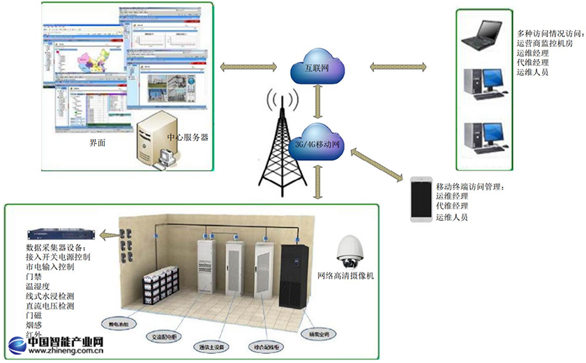 基站一般為無(wú)人值守,它的無(wú)故障正常運(yùn)轉(zhuǎn)尤為重要,且大多基站建設(shè)分散,地處偏僻,且相距甚遠(yuǎn)。如何統(tǒng)一有效的管理它們,做到防患于未然,是一致以來(lái)困擾管理層的課題。 環(huán)境,如溫度濕度等;基站必須處在高度安全的狀態(tài)下工作,如必須有防火、防水、煙感、竊盜、掉電等多種告警系統(tǒng);必須時(shí)時(shí)刻刻如親臨現(xiàn)場(chǎng)一樣24小時(shí)監(jiān)管這些設(shè)備。