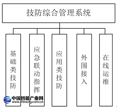 系統(tǒng)組成主要包括:基礎類技防、應急聯(lián)動指揮、應用類技防、外圍接入、在線運維五個部分。