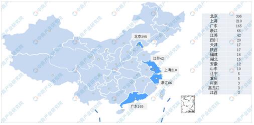 近兩年來,中國人工智能企業(yè)數(shù)量快速增長。從成立時間來看,中國人工智能創(chuàng)業(yè)企業(yè)的集中涌現(xiàn)在2012-2016年期間,并且在2015年達到頂峰,新增企業(yè)數(shù)量達到228家。2016年之后,企業(yè)數(shù)量繼續(xù)擴大,但增速有所放緩。中國人工智能企業(yè)主要集中在北京、上海和廣東三地。其中,北京人工智能企業(yè)數(shù)量多達395家,遙遙領先其他省市。此外,浙江和江蘇兩省也有較多的人工智能企業(yè)。