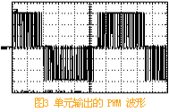 每個功率單元結(jié)構(gòu)上完全一致,可以互換,其電路結(jié)構(gòu)見圖2,為基本的交-直-交單相逆變電路,整流側(cè)為二極管三相全橋,通過對IGBT逆變橋進行正弦PWM控制,可得到如圖3所示的波形
