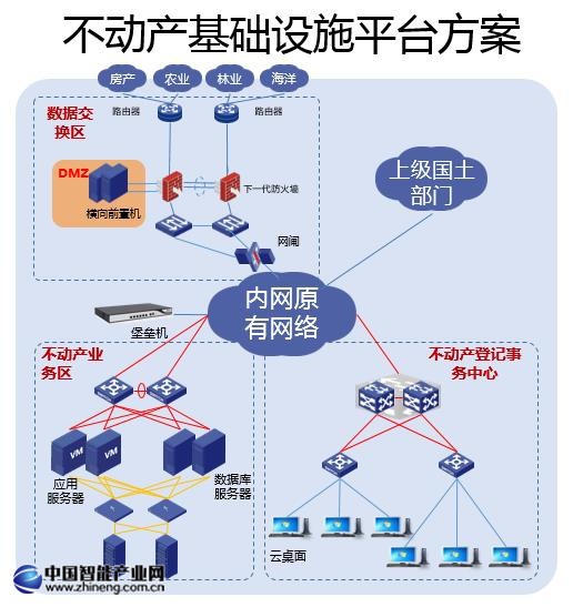 在原有國土網(wǎng)絡的基礎上,新增不動產(chǎn)業(yè)務區(qū)、數(shù)據(jù)交換區(qū),以及對不動產(chǎn)登記事務中心進行網(wǎng)絡新建或改造。