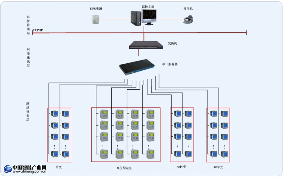 該項(xiàng)目由一個(gè)10KV高壓變電所,一個(gè)公變,以及兩個(gè)專變組成。該項(xiàng)目通過(guò)接入的21臺(tái)微機(jī)保護(hù)、50臺(tái)PZ96L-E4和兩臺(tái)溫控儀,全方位監(jiān)測(cè)配電安全,保證變壓器在安全范圍內(nèi)運(yùn)行。通過(guò)專變和公變的同時(shí)監(jiān)測(cè),監(jiān)測(cè)整個(gè)工廠的耗能情況,確定高耗能范圍,實(shí)施節(jié)能措施,筑建綠色工廠。